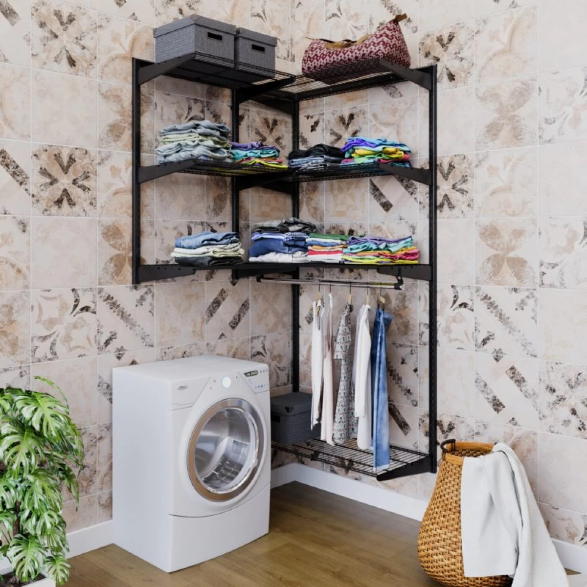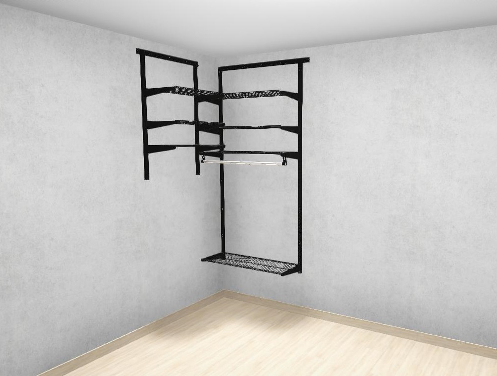 Базовый комплект гардеробной системы GS - это готовое решение для квартиры, дачи, гаража, обеспечивающее удобное хранение вещей. Система собирается в 6 разных конфигурациях, что позволяет подстраивать ее под размеры помещения и ориентироваться на личные пожелания по расположению отдельных элементов. В комплект входят несущие рельсы и навесные направляющие, полки, штанги, аксессуары, крепежные элементы. Можно докупить множество дополнительных компонентов для гардеробной системы.