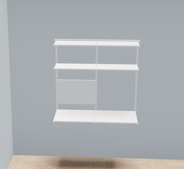 В комплект входят несущие рельсы и навесные направляющие, полки, штанги, аксессуары, крепежные элементы. Можно докупить множество дополнительных компонентов для гардеробной системы.