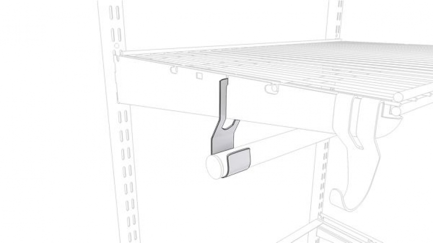 Кронштейн для установки перекладины навешивается на кронштейн для полки и представляет собой крючок, который выполняется из листовой стали с порошковым покрытием.