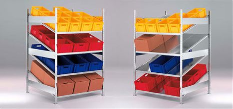 Стеллажи с пластиковыми контейнерами