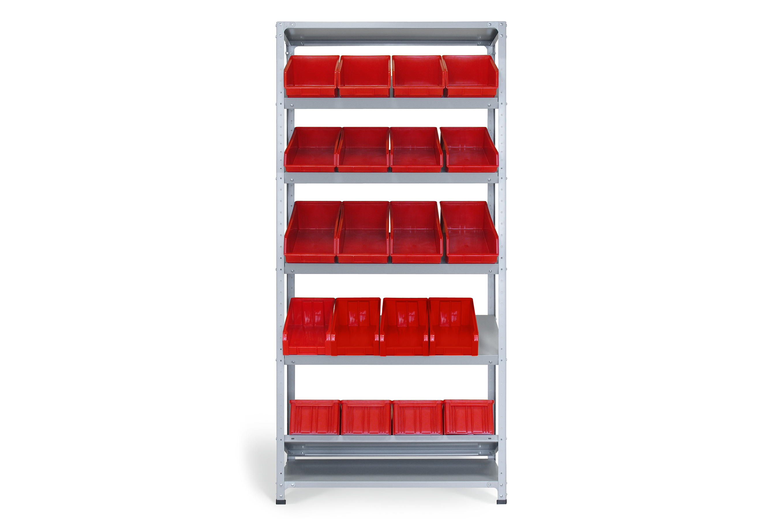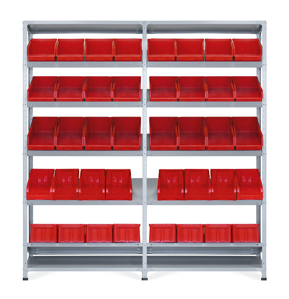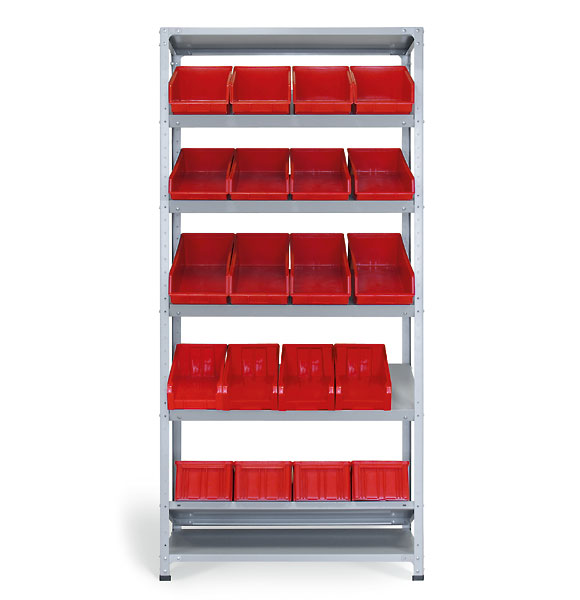Пластиковые ящики в стандартную комплектацию не входят и приобретаются отдельно. Загрузка ящиков может производиться как с лицевой, так и с обратной стороны стеллажа.