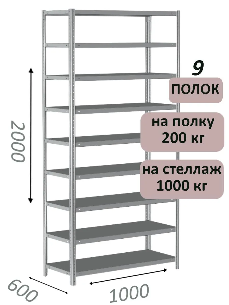Стеллаж MS Hard 200х100х60, 9 полок