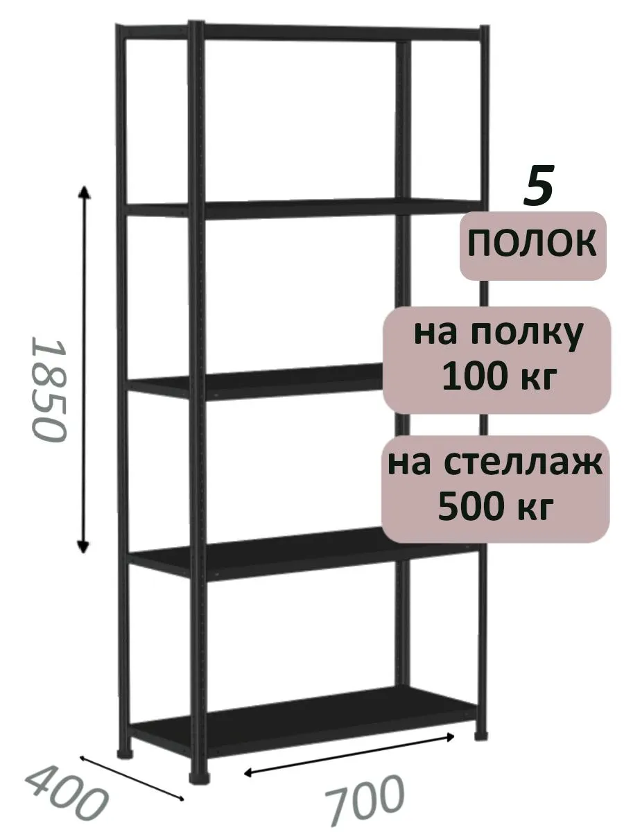 Стеллаж MS Standart 185х70х40, 5 полок, чёрный