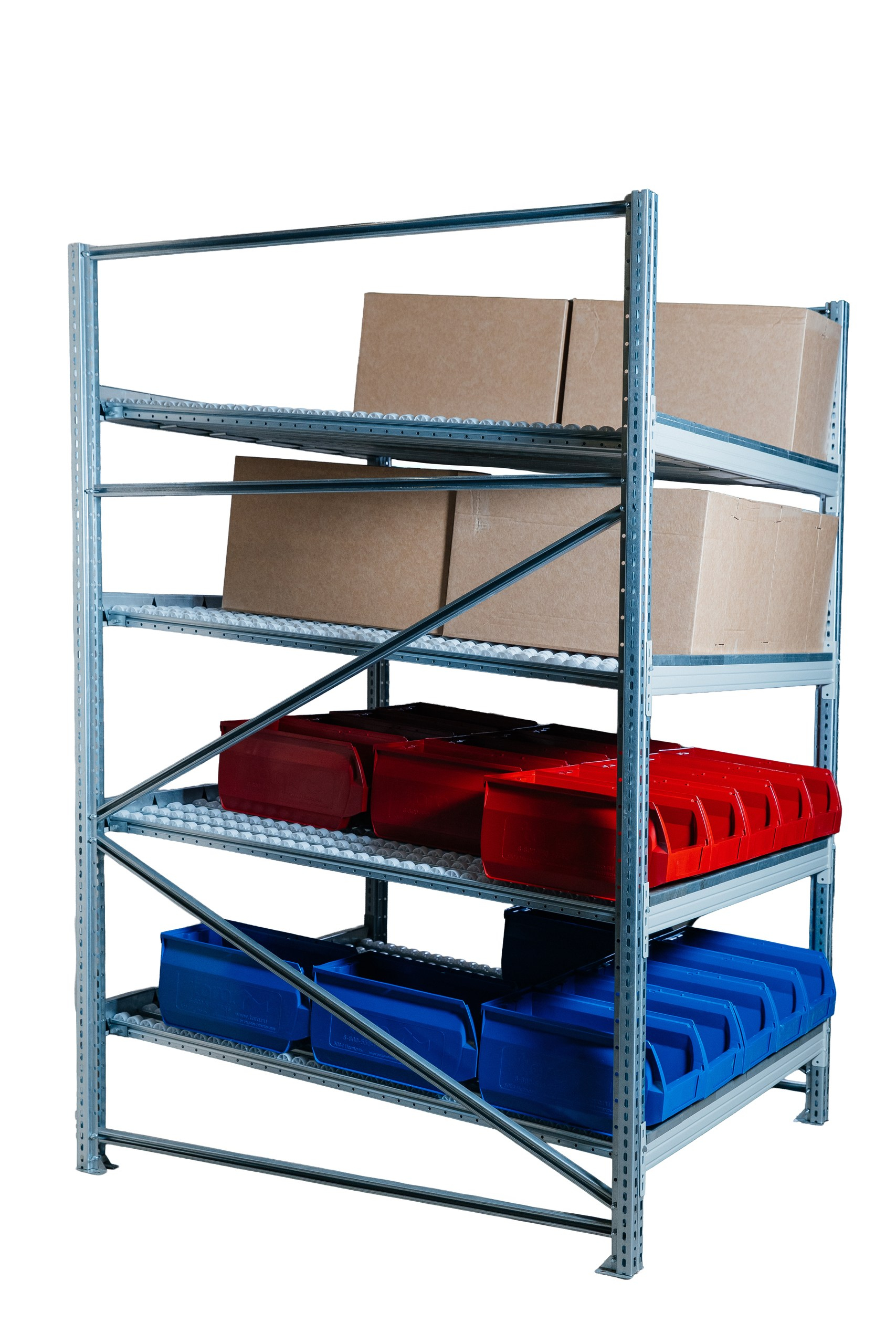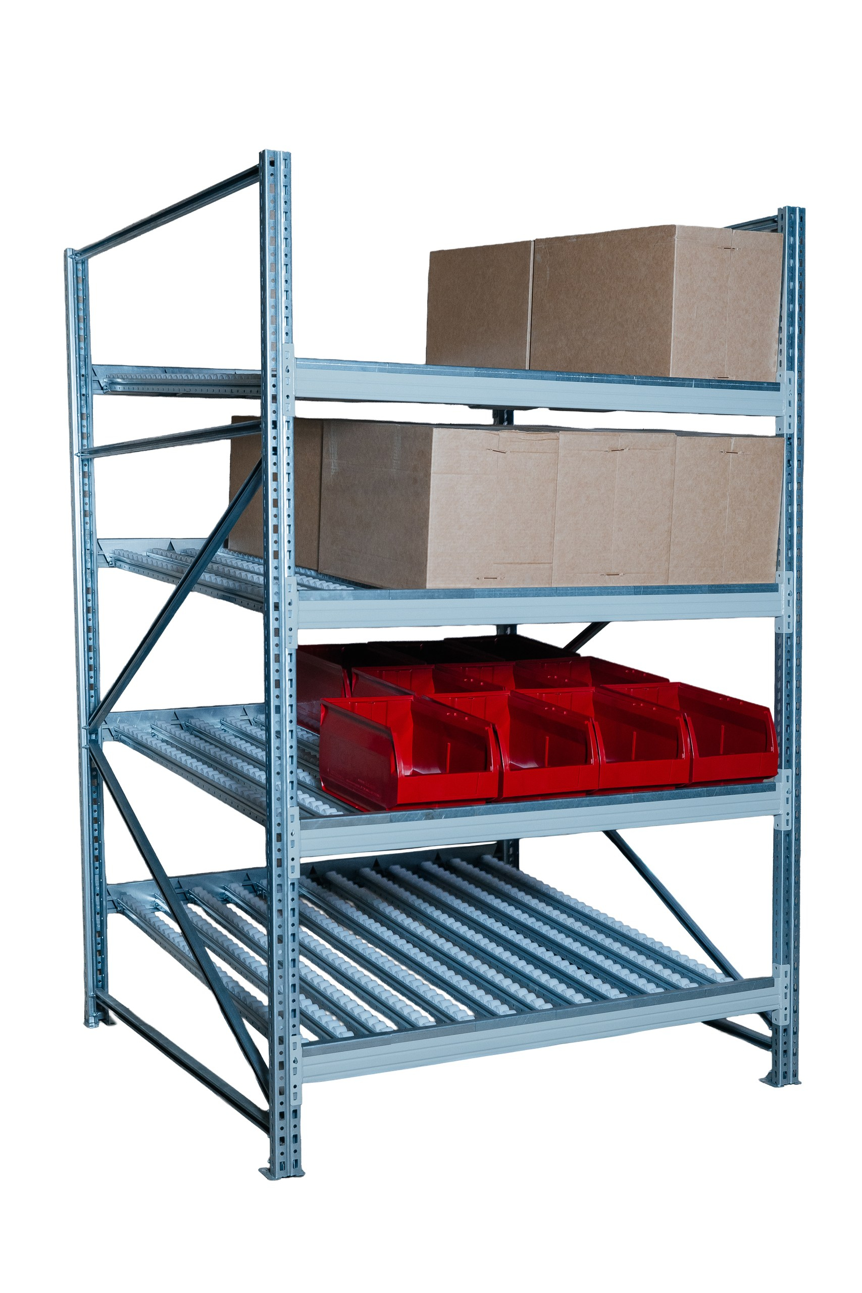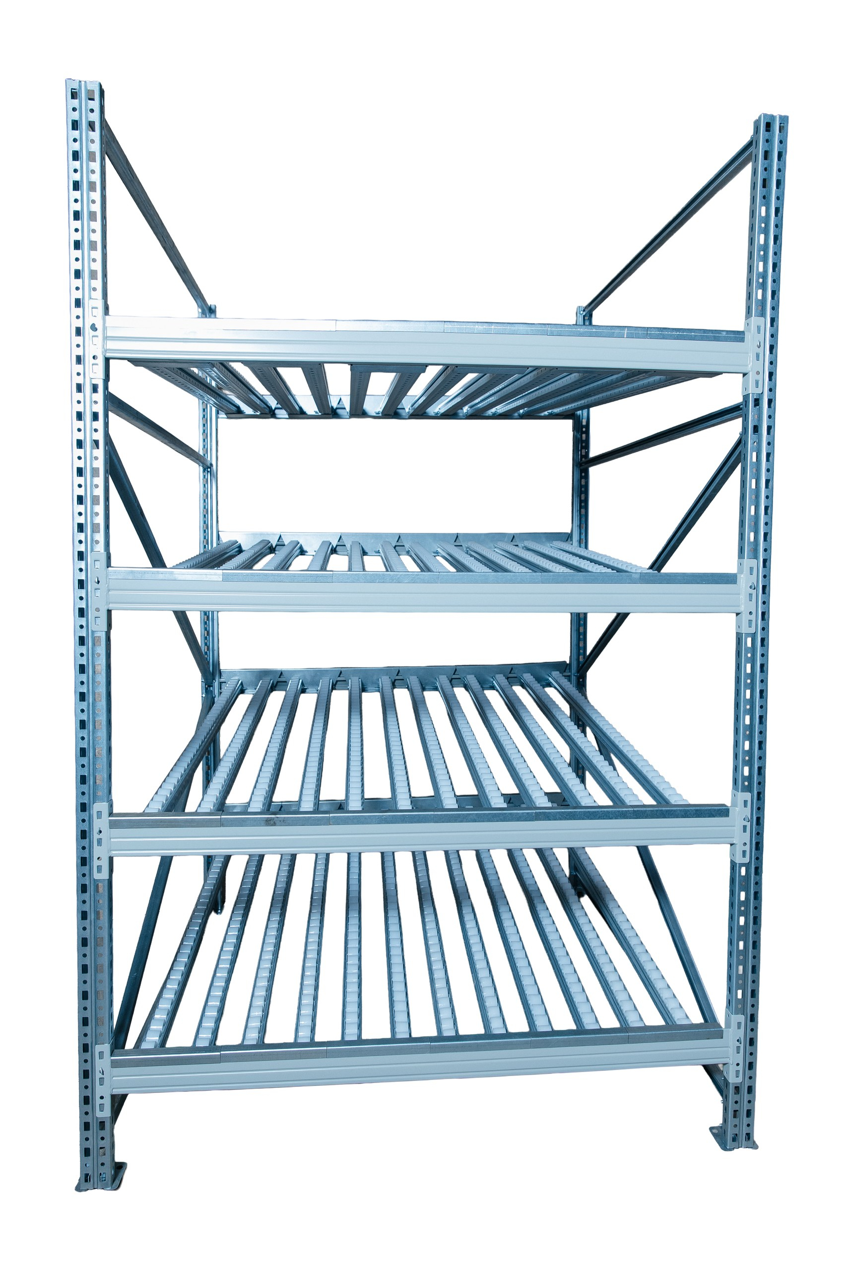 Гравитационный стеллаж с роликовыми полками 1600х1200х1300, 4 яруса