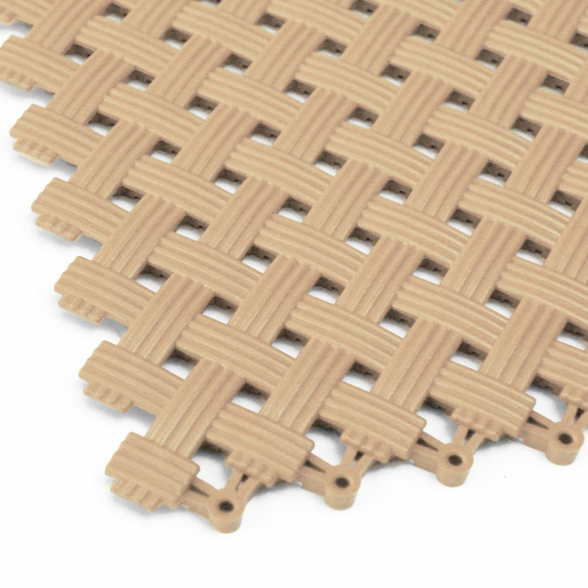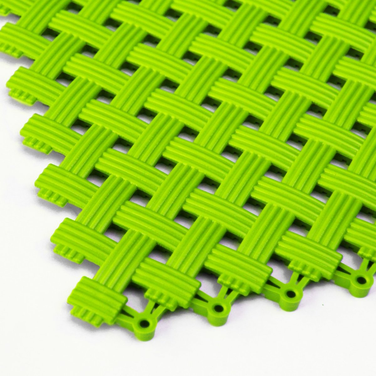 Напольное покрытие, является принципиально новым противоскользящим покрытием для бассейнов, бань и саун. Оно состоит из отдельных модулей, каждый из которых оснащен дренажной системой. Благодаря ей вода свободно стекает в отверстия модуля и удаляется из помещения через слив, протекая под смонтированным покрытием.