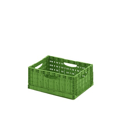Контейнер отлично подходит для выкладки различной продукции в торговых залах магазинов. Отлично подойдет для использования в качестве многооборотной тары в пулинговых схемах. Складной ящик изготовлен из первичного полипропилена, имеет перфорированные стенки и дно, а также удобные ручки по всем четырем сторонам. пустых ящиков.