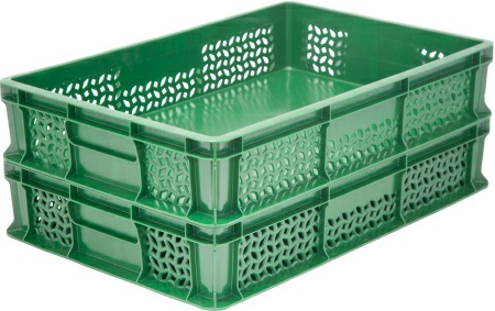 Пластиковые ящики, размерами 600х400 мм, универсальные штабелируемые с перфорированными стенками и дном. Ящики используются на пищевом производстве, в складском хранении, логистике. Самое широкое распространение ящик получил в хлебной отрасли.