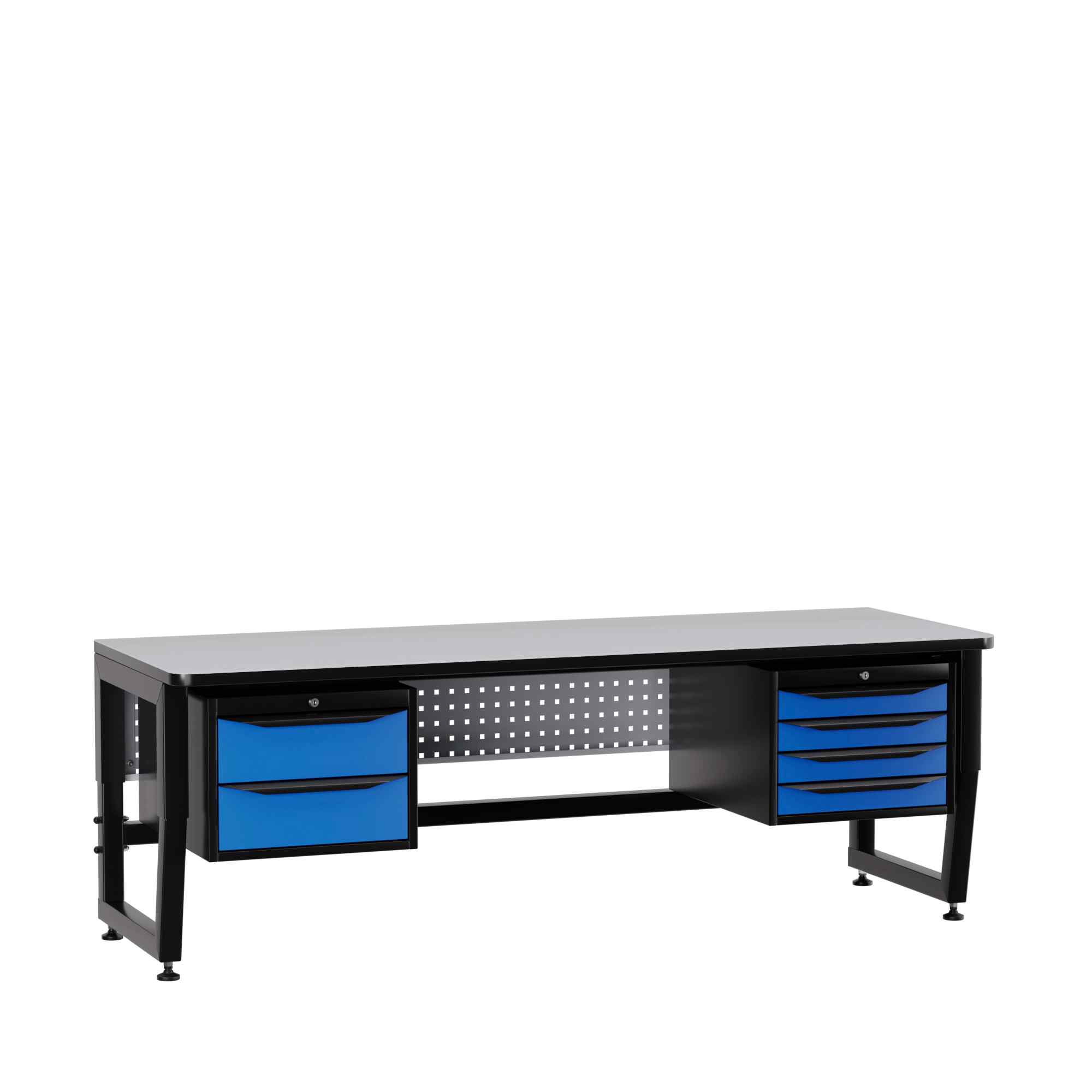 Несущая конструкция стола – это промышленный ESD каркас. Сочетание опорных, несущих и усиливающих элементов из металла, обеспечивают высокую надежность конструкции при интенсивной промышленной эксплуатации с распределенными нагрузками на рабочее место до 300 кг. Регулируемые опоры с возможностью плавной регулировки по высоте позволяют установить удобную высоту рабочей поверхности от 700мм до 850мм. Специальное ESD полимерное покрытие элементов каркаса с сопротивлением 1 МОм обеспечивают антистатические свойства изделия