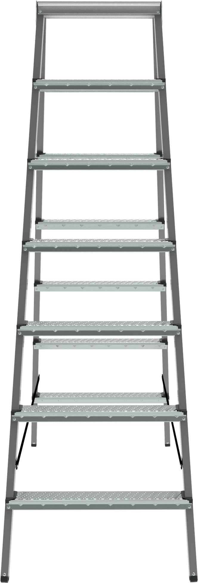 - Стальные оцинкованные рифлёные ступени 70 мм с дополнительными рёбрами жёсткости для надёжного сцепления.