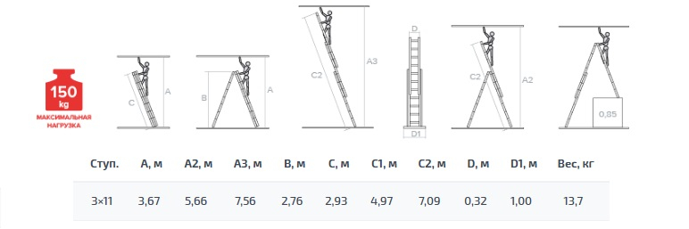- Верхняя секция легко снимается для использования в качестве отдельной приставной лестницы.