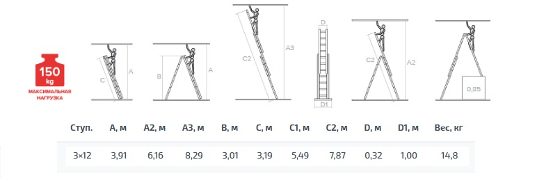 - Верхняя секция легко снимается для использования в качестве отдельной приставной лестницы.