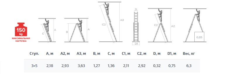 - Верхняя секция легко снимается для использования в качестве отдельной приставной лестницы.