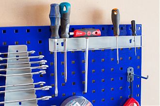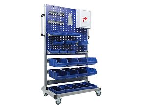 Стенд предназначен для удобного хранения, комплектующих, рабочего инвентаря на производственных предприятиях, в автосервисах и ремонтных мастерских. Так же часто используется в системе бережливого производства 5S, при организации рабочего места.