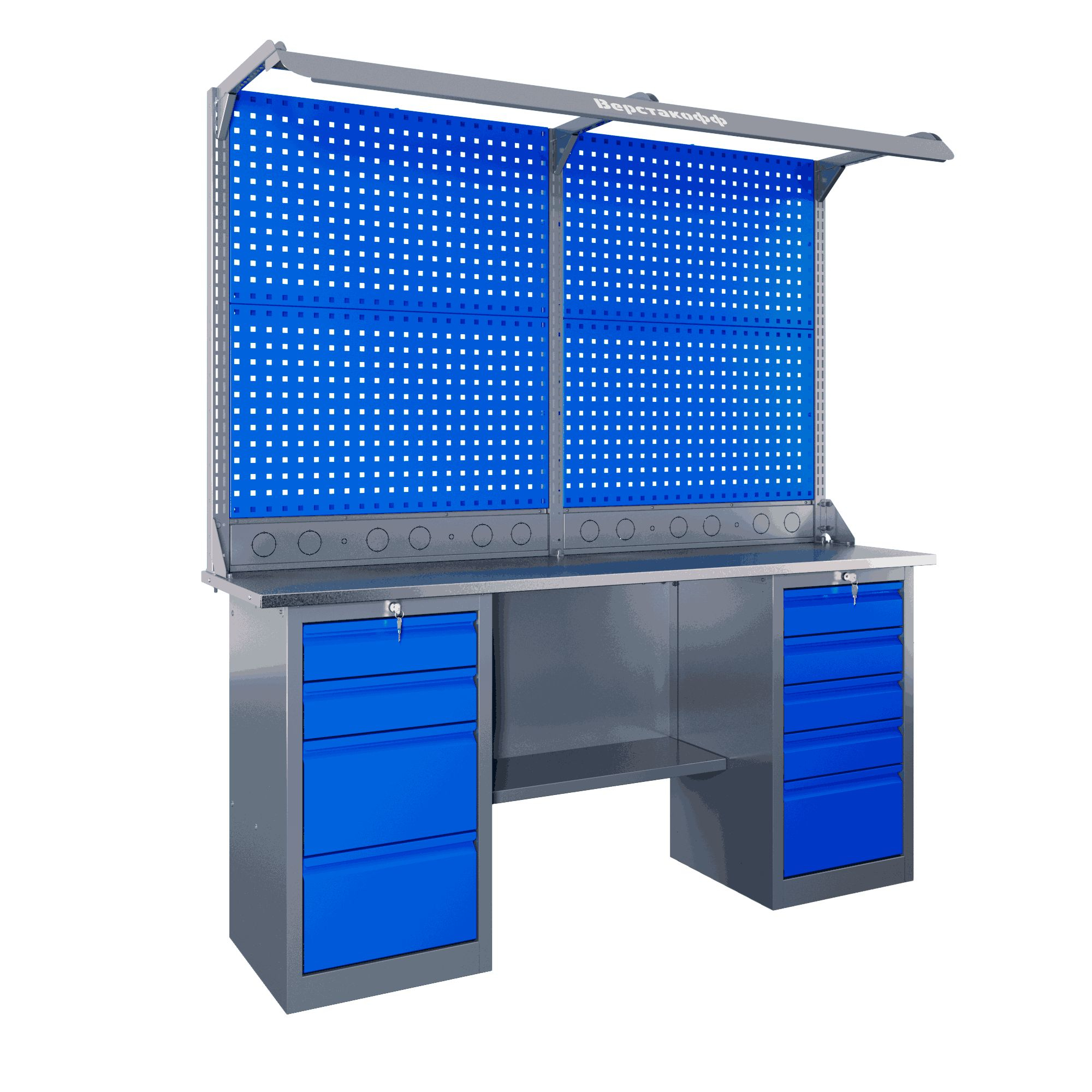 Самые компактные верстаки с глубиной столешницы 500 мм. Благодаря небольшой глубине, такие верстаки легко размещаются в ограниченных пространствах, например, в гаражах, мастерских и тд. Несмотря на компактные размеры, верстаки могут быть оснащены полками, ящиками и держателями для инструментов, что помогает поддерживать порядок и быстро находить нужные предметы.