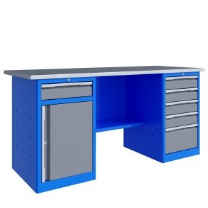Верстак серии Technic 201.58.6 состоит из столешницы шириной 1996 мм, тумбы P5 с четырьмя малыми и одним большим ящиком, тумбы P8 с малым ящиком и отделением с дверью и одной полкой и полки-стенки. Предназначен для выполнения сборочных, ремонтных, слесарных, монтажных и других видов работ на производстве, в сервисных центрах, мастерских, гаражах, а также для обучения технологии в учебных заведениях.