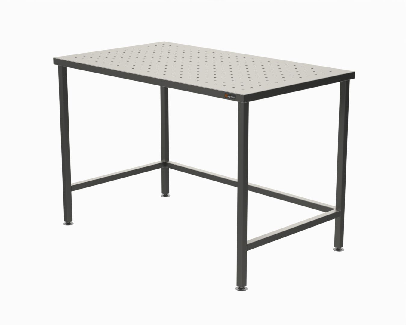 Стол состоит из сварной металлической конструкции из полированной нержавеющей стали.