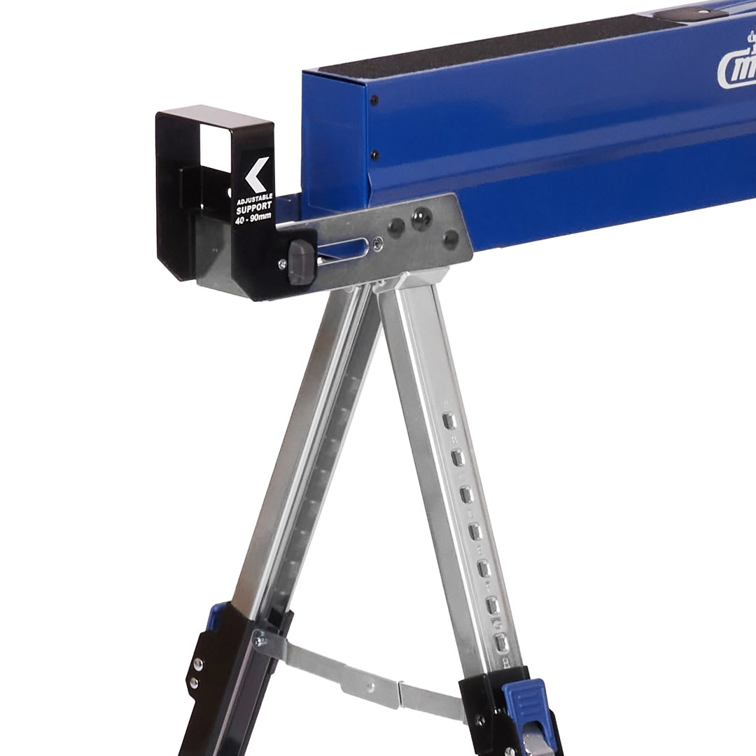 Козлы изготовлены из качественной стали с порошковым окрасом, для предотвращения коррозии, и выдерживают жесткие условия эксплуатации. Оборудованы складными, телескопическими ножками и регулируются по высоте в 8-ми положениях: от 620 до 820 мм.