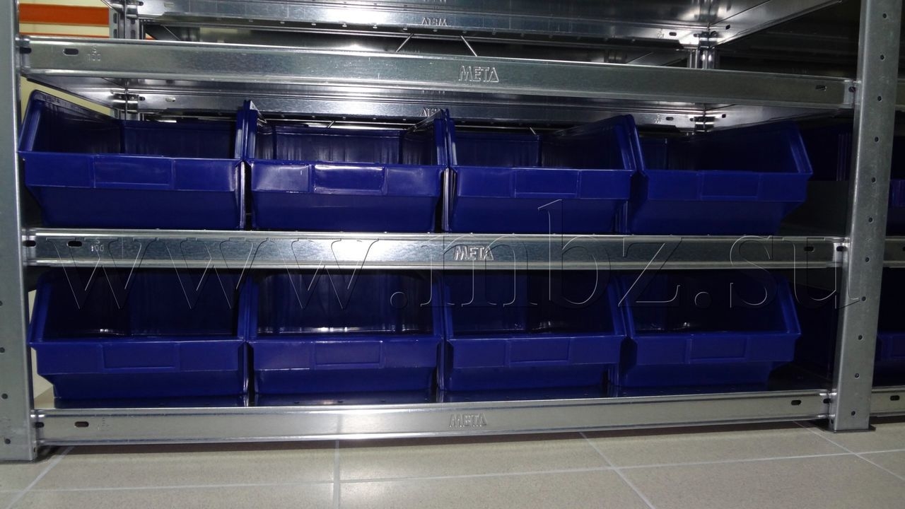 Размещение пластиковых ящиков для метизов в стеллаже